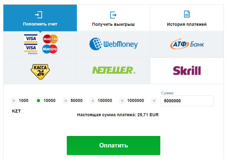 - Skrill. Этот метод выбирают по причине его надежности, простоты в эксплуатации и невысоких процентов комиссии. Максимум для ввода составляет 1 миллион рублей или 20 тысяч долларов (евро).